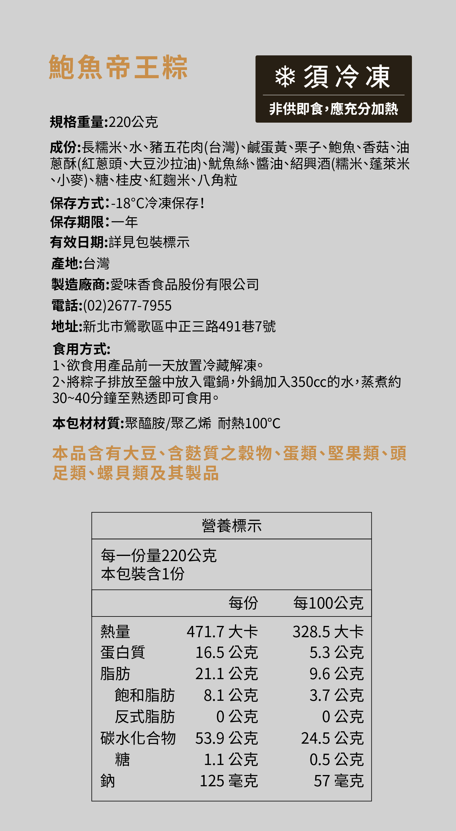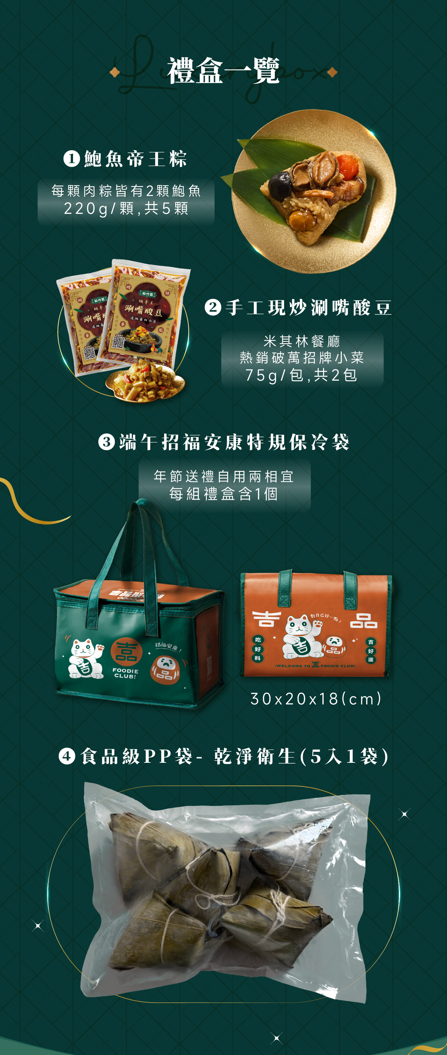 1. 【全台獨家】奢華鮑魚帝王粽*5顆 (220g/顆, 共一袋)