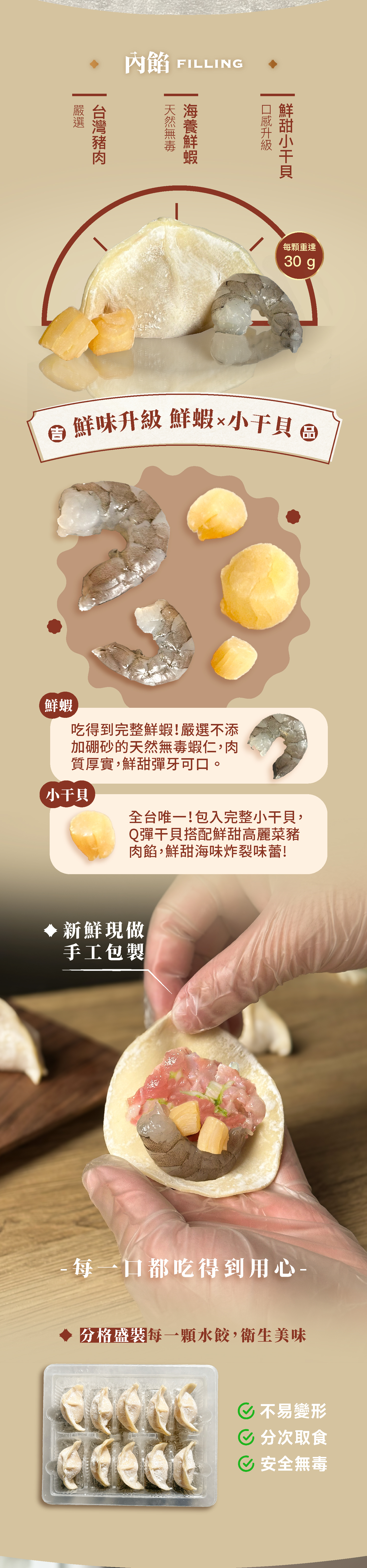 海味十足雙重享受!一顆水餃就吃得到鮮蝦和干貝!