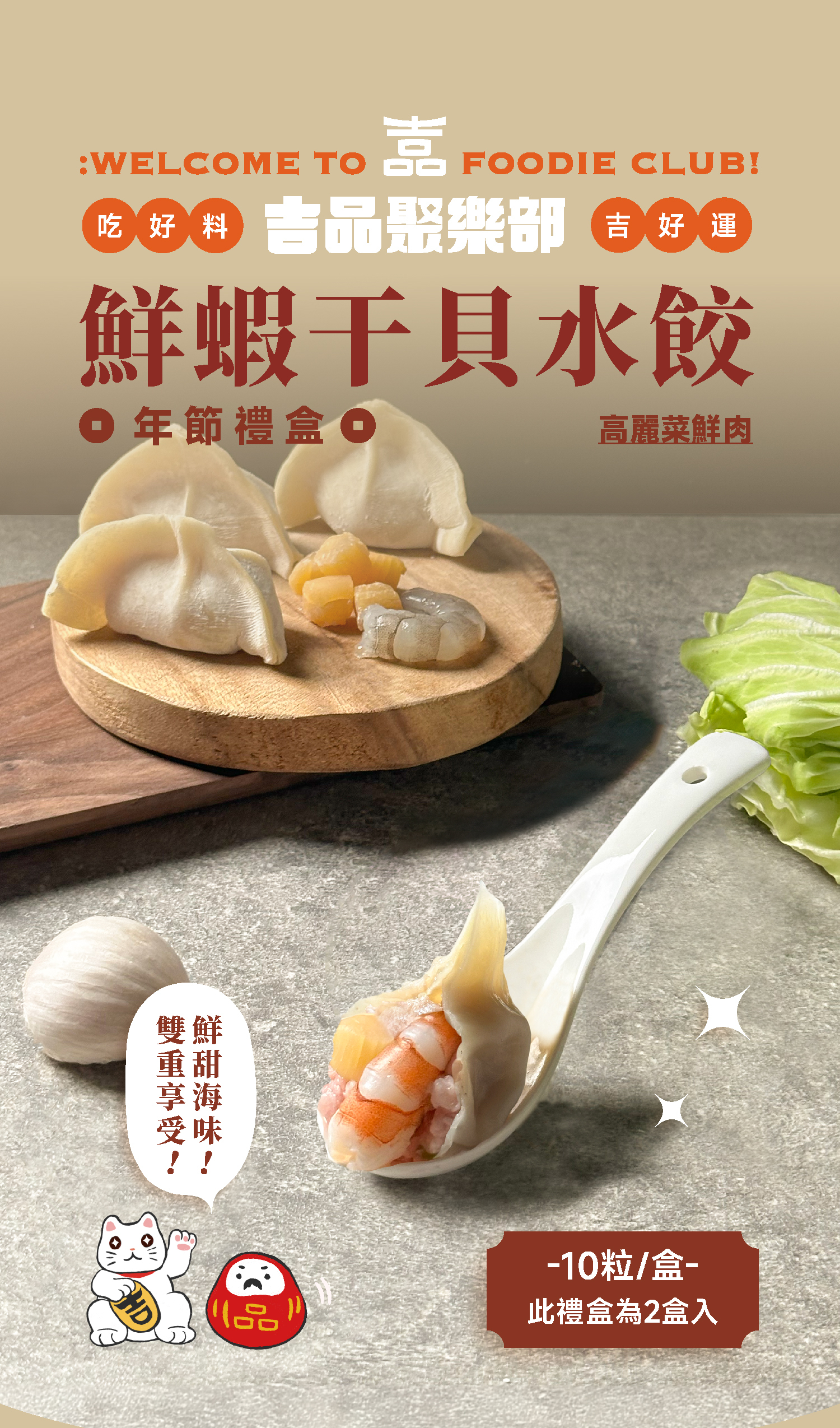 **1組禮盒為2盒水餃 ,共20粒鮮蝦干貝水餃+品牌保冷提袋1入**